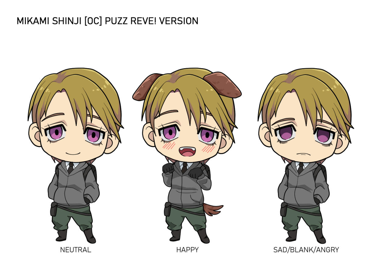 Shinji's twin brother. He grew up in foster care. Puppy is an innocent and pure angel. He's full of genuine and deep affection, especially towards his twin brother, who acts as his caregiver. he has permanently rosy cheeks, so it's not hard to tell them apart. just like shinji, he is familiar with firearms too, he just doesn't brag about it.